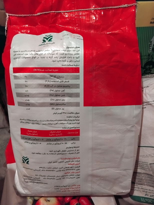 دیدن محصولات مرتبطاستفاده از کود 20-20-20 ملی شیمی کشاورز مواد مغذی بیشماری را به باغات ، زراعت ، گل و گیاه میدهد و نتیجه خود را در مقاومت محصول به محیط نامساعد و رشد و قوی شدن ریشه و ساقه و برگ گیاه نشان می دهد و محصول مرغوب و بی عیبی را کشاورز برداشت می کند