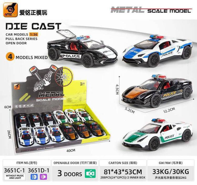 ماشین اسباب بازی پسرانه وارداتی لامبورگینی فلزی موزیکال چراغدار عقبکش سه درب بازشو