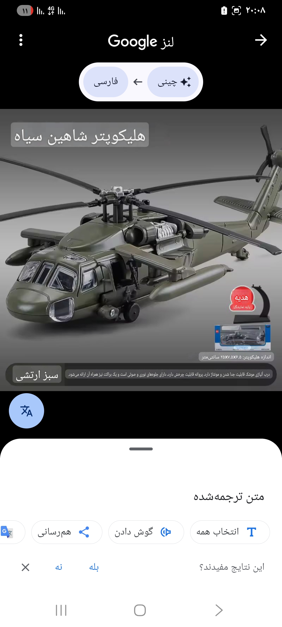 ماکت فلزی هلیکوپتر جنگی شاهین سبز ارتشی با پایه