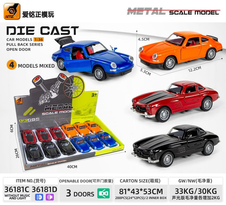 ماشین اسباب بازی پسرانه پورشه و کروت قدیمی موزیکال چراغدار عقبکش فلزی سه درب بازشو